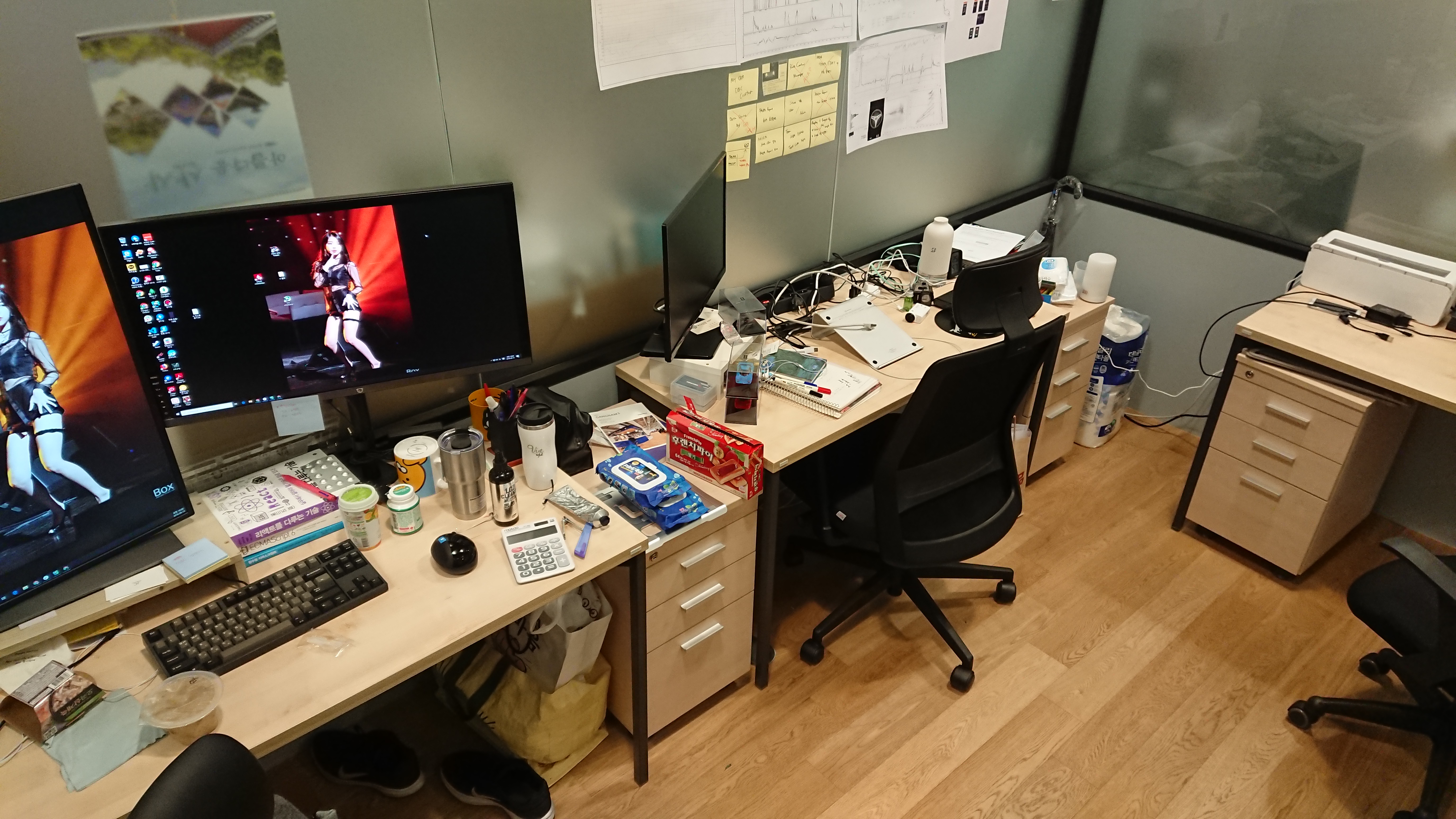 내가 일하는 공간이다. 3인실이고 원래는 책상 3개가 다닥다닥 붙어 있지만 당분간 둘만 근무하기에 하나는 옆으로 돌려놨다. 다만 의자는 회사에다 사달라고 했다. 참고로 우리 사무실은 본사가 지방에 있고 이 공간은 브랜치 역활을 하는 곳이다.